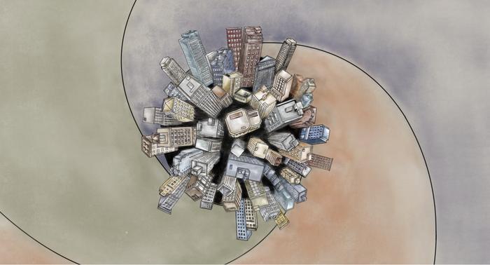 The image conveys the meaning of expanding cities and their central impacts on all facets of life on earth.