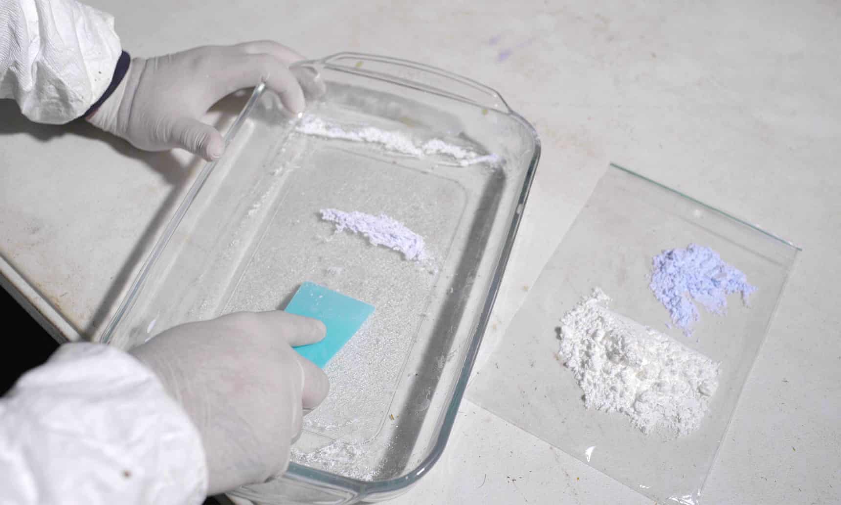 At one such lab – little more than a few tables amid scrubby woodland near the state capital, Culiacán – a cartel chemist and his assistant were working on a new batch of pills. Both men wore white overalls and respirator masks. The chemist, a burly man with a master’s degree in biochemical engineering described the industry’s transformation, as the pair worked at an outside table.