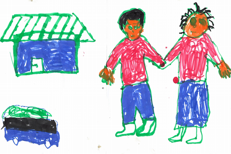 When asked to draw their family, the majority of peacekeeper children drew a nuclear family with an underlying structure that did not match their family’s actual situation. Several peacekeeper children were explicit about the drawing being an expression of their desire to be reunited with their fathers: